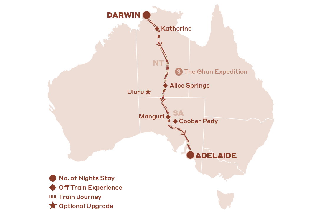 Wake to the wide-open skies of the outback as The Ghan draws closer to the iconic town of Alice Springs. After a hearty breakfast on board, step into the heart of Central Australia with a choice of Off Train Experiences designed to suit every traveller.