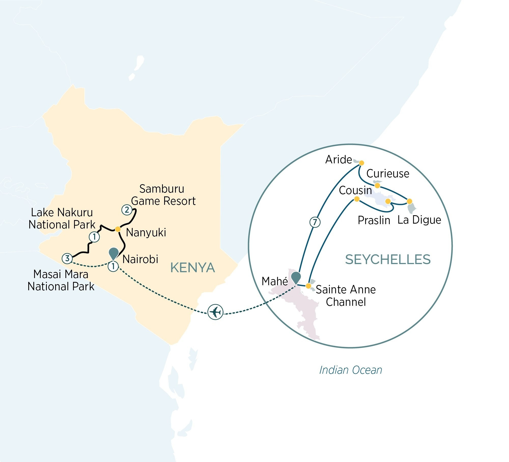Bid farewell to your Driver – Guide before your included light aircraft flight back to Nairobi this morning where it’s time to say farewell to the magic of Africa of Africa and the Seychelles