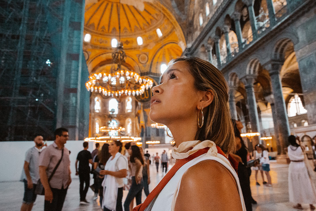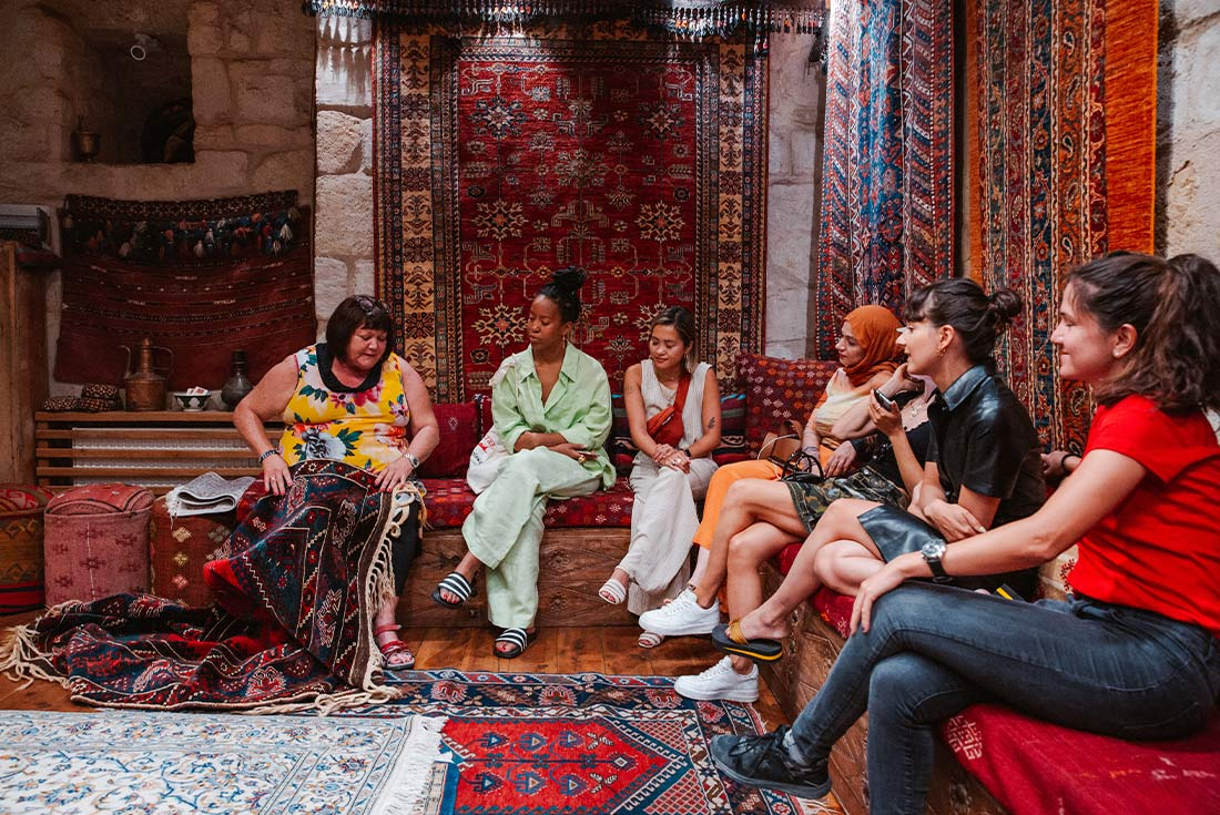 Take a mid-morning flight to Kayseri in the Cappadocia region today. Then, drive to Goreme – sitting in a valley of cones, needles and columns carved by nature, the city is honeycombed with caves, churches and dwellings known as fairy chimneys. In times of peace, the people in this region lived on the land, but in times of war or persecution they took to living underground. When you arrive, head out for a walk with your leader and visit the Goreme Open Air Museum – a UNESCO World Heritage site of ancient rock-cut churches and monasteries. For dinner tonight, head to the small town of Avanos for a home-cooked meal with impact. Oznur, her husband and three children moved from the city of Hatay after the major earthquakes of February 2023, where they lost their home and relatives. Hatay is a UNESCO World City of Gastronomy, where several cultures have lived together peacefully for centuries and is known for its rich, delicious cuisine – tonight, Oznur will bring these culinary secrets to life.