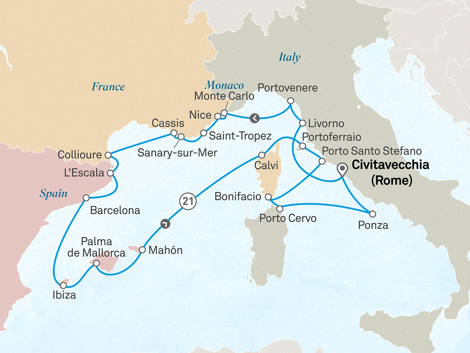 Your Signature Yacht Cruise concludes this morning in Civitavecchia, an ancient port dating back to the 2nd century and the gateway to Rome — the Eternal City, where timeless ruins and elaborate churches stand alongside bustling cafes and designer boutiques. Every corner whispers stories of empires long past.