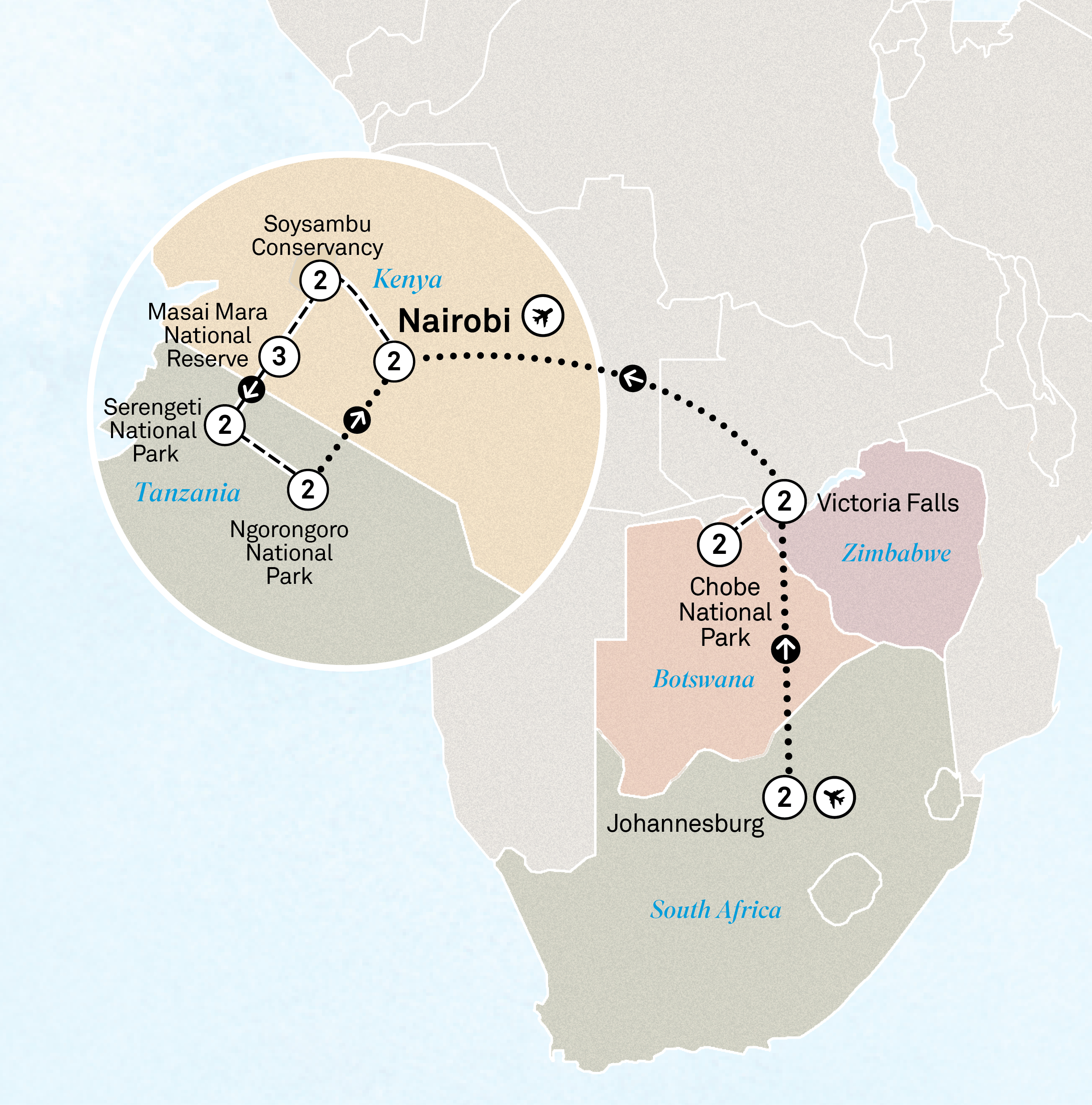 Travel to Kilimanjaro International Airport for your flight back to Nairobi, taking wonderful memories with you.