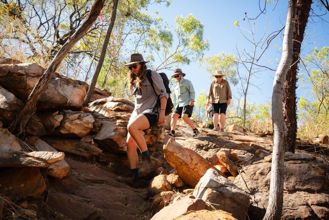 Over the next few days, you’ll explore the many gorges and hikes of the El Questro Station. Today’s adventure includes two hikes to nearby gorges. The first, Emma Gorge, involves a bit of careful rock hopping through the bush with the payoff being a droplet waterfall and watering hole, surrounded by greenery-lined rock walls. The next destination, the El Questro Gorge, offers a short and a long walk. The short walk takes you through the Livistona palms rainforest, across the creek to the halfway pool, where you’ll be able to swim. From here, the longer trail begins, becoming more challenging but well worth the effort as you reach the cool Mac Micking pool and falls for a swim. Finish off the day with a soak at the Zebedee Thermal Springs, surrounded by an ancient forest of palm trees and gentle waterfalls.
