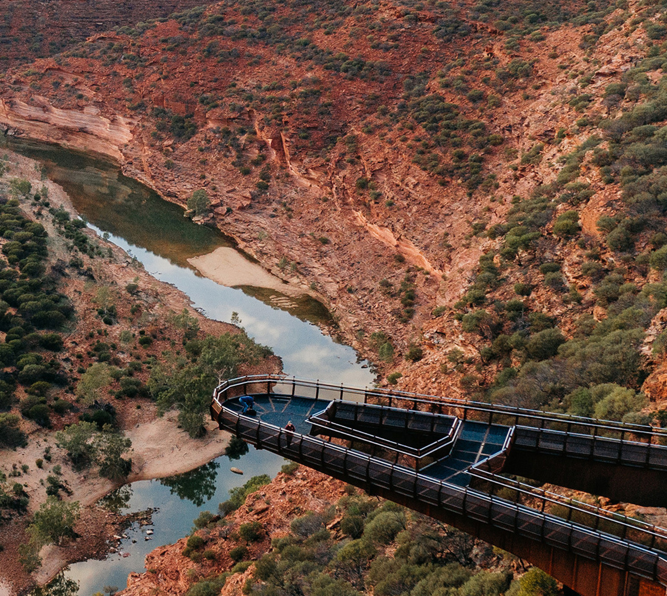 Kalbarri National Park does drama very well. Over millions of years, the Murchison River carved through the landscape, leaving behind deep gorges, red-and-white sandstone and coastal cliffs that don’t exactly do subtle. To take it all in, step out onto the Kalbarri Skywalk, which juts 25 m (82 ft) beyond the gorge rim and hangs 100 m (328 ft) above the river below. Not one for anyone scared of heights. You’ll also meet an Indigenous guide for a MAKE TRAVEL MATTER® Experience and be welcomed to Country. Learn about bushfoods, medicine plants and the traditional uses of local flora, while hearing stories that reveal the region from an Aboriginal perspective.