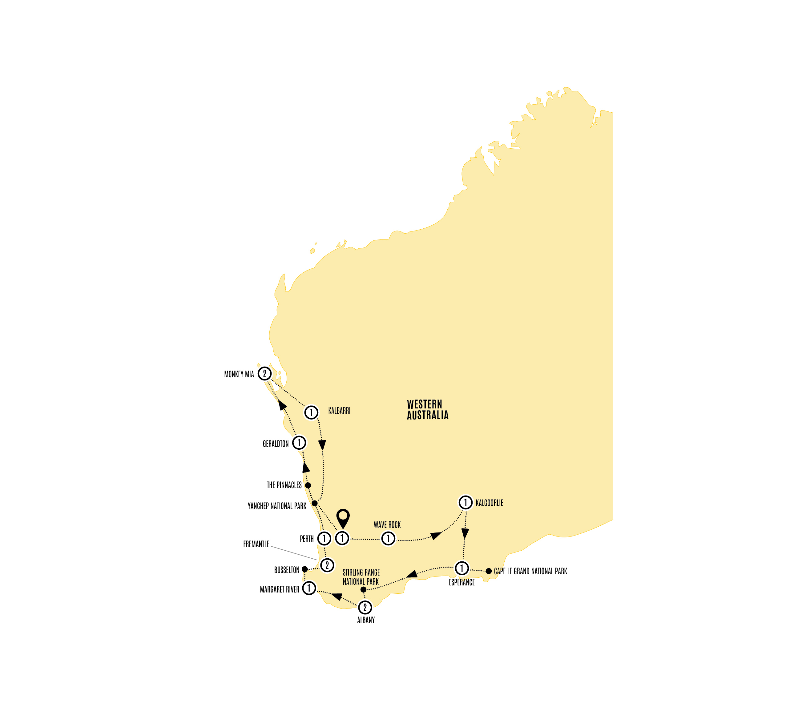 You could spend months exploring Western Australia from Perth and still only skim the surface. But with the right crew, two weeks can go a very long way. Think the limestone spires of the Pinnacles, pink lakes that look almost too bright to be real, powder-white beaches, dolphins at Monkey Mia, kangaroos on Lucky Bay and quokkas over on Rottnest Island. Then there’s Margaret River, where superb wineries make a strong case for lingering a little longer. Add record-breaking national parks and the chance to connect with Country through Aboriginal experiences along the way, and you’ve got a journey that packs plenty in without feeling rushed. This trip is accompanied by a Travel Director and Driver.