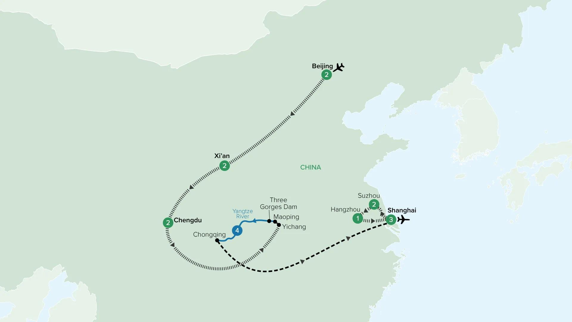 Experience the wonders of China on a 17-day journey across this expansive country, encompassing all the major highlights including iconic sights like The Great Wall near Beijing, Terracotta Warriors of Xi'an, Gianda Panda Bears in Chengdu, and a three-night luxury cruise along the might Yangtze River. Finishing in Shanghai, China's commercial capital, this incredible journey highlights the harmonious blend of China's rich cultural heritage with its fast-growing, gleaming urban cities, savouring China's celebrated cuisine at every step along the way.