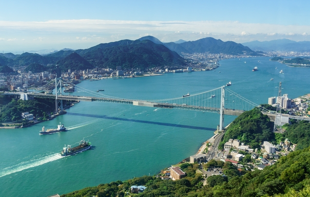 Cruise through the Kanmon Straits, the narrow stretch of water that separates two of Japan's main islands, Honshu and Kyushu.